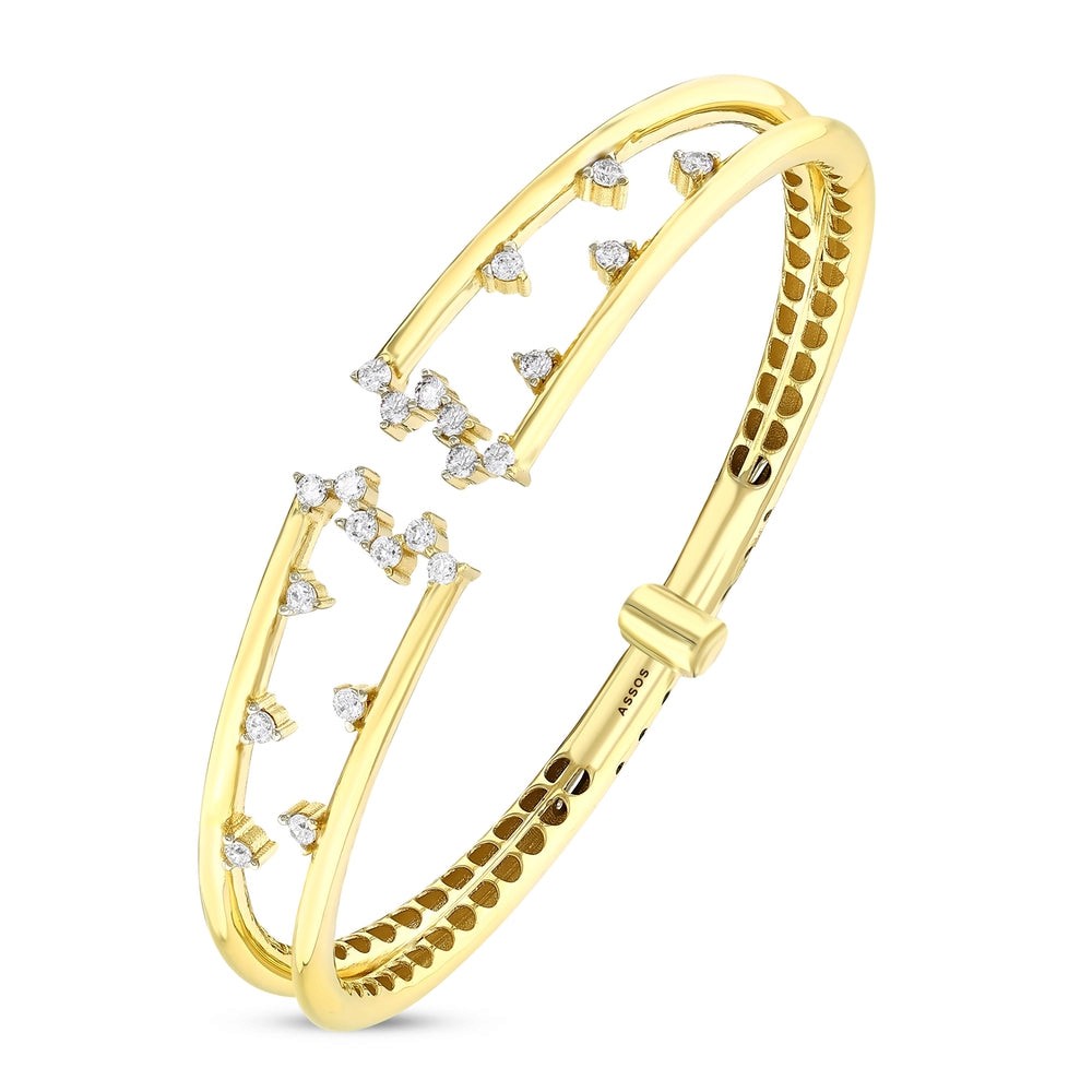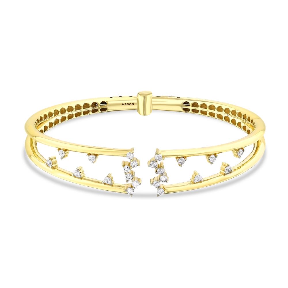 Elegant 14K Yellow Gold Design Bangle Bracelet with Sparkling Accents