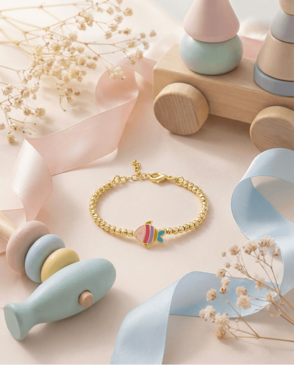 Bu model 14 ayar altından üretilmiş olup 3.87 gr ağırlığındadır ve balık figürlü tasarımıyla dikkat çeker. Dengeli yapısı sayesinde çocuk bileği için konforlu bir kullanım sunar ve günlük takı ihtiyacına uygun hafif bir bilezik modelidir. Çocuk altın bilezik kategorisinde yer alan ürün, zarif ve sade görünümüyle öne çıkar. Belirtilen ürün gramajı, üretim sürecine bağlı olarak ± %5 oranında değişiklik gösterebilir.