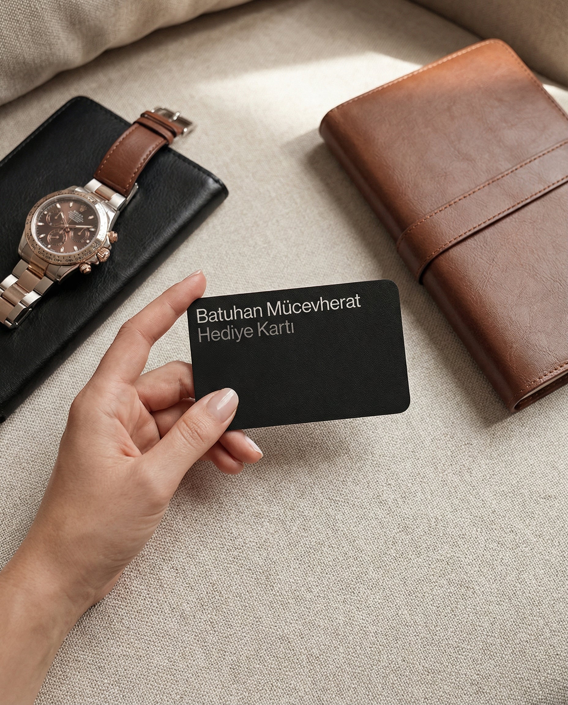 Mücevher kişiseldir, ancak seçim özgürlüğü paha biçilemezdir. Batuhan Mücevherat Hediye Kartı ile sevdiklerinize, koleksiyonumuzdaki eşsiz parçalar arasından kendi ışıklarını yansıtacak o özel parçayı seçme şansı verin. İster yıl dönümü, ister doğum günü, ister sadece içinizden geldiği için...