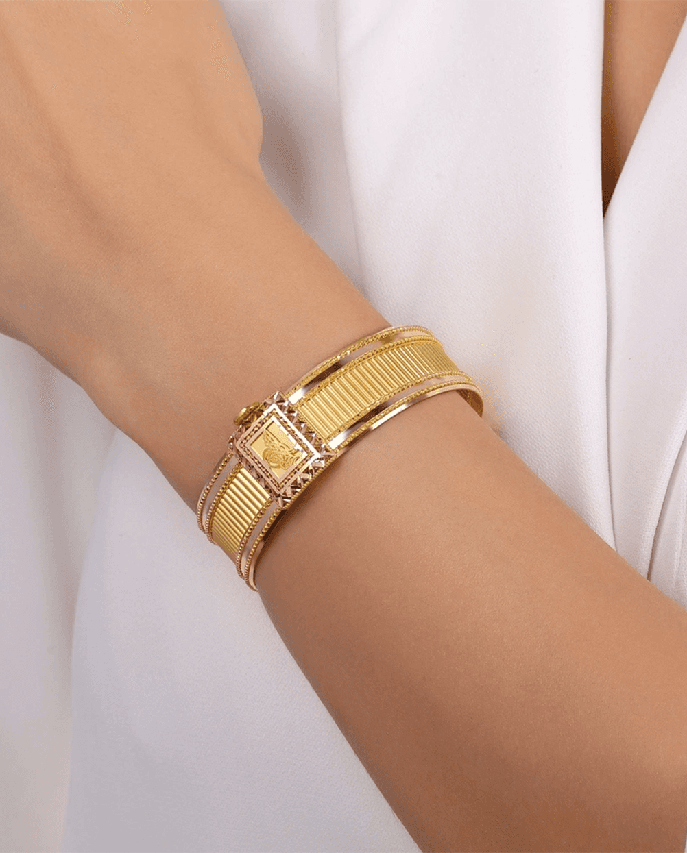 Bu tasarım altın kelepçe 14 ayar altından üretilmiş olup 22.66 gram ağırlığındadır ve yaklaşık 6 cm çap ölçüsüne sahiptir. Dengeli yapısı sayesinde bilekte konforlu bir kullanım sunar ve altın kelepçe bilezik kategorisinde estetik formu ile öne çıkar. Günlük kullanıma uygun olduğu kadar özel günlerde de şıklığı tamamlayan zarif bir aksesuardır. Belirtilen ürün gramajı, üretim sürecine bağlı olarak ± %5 oranında değişiklik gösterebilir.